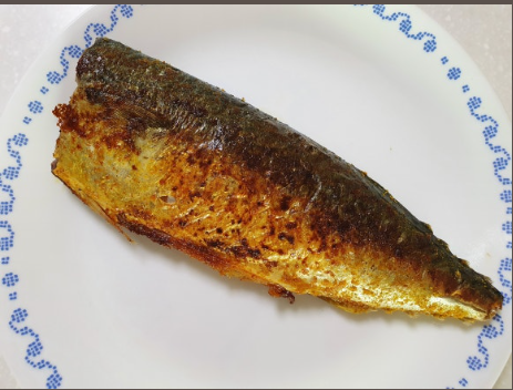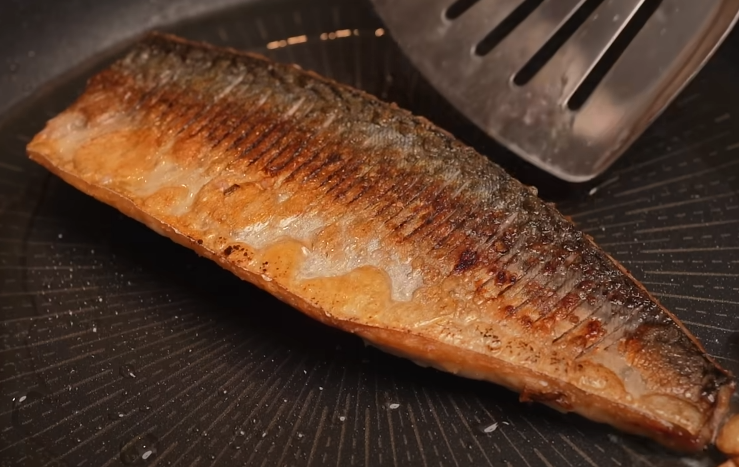 고등어의 살코기 부분은 프라이팬에 닿지 않게 하기---> 살코기 부분은 쉽게 수분을 잃기 때문