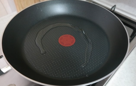 프라이팬의 기름양은 많지 않게 주의