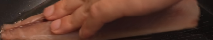 프라이팬에 기름을 둘러주는데 너무 많이 두르면 안 됩니다. 기름이 많을수록 생선의 옆면에서 지글거리는 기름의 높이가 높기 때문에 바삭한 껍질을 얻는 과정에서 살코기 부분이 퍽퍽해지는 정도가 심해집니다. 그렇기 때문에 껍질에 표면적을 코팅할 정도의 최소량이면 됩니다.