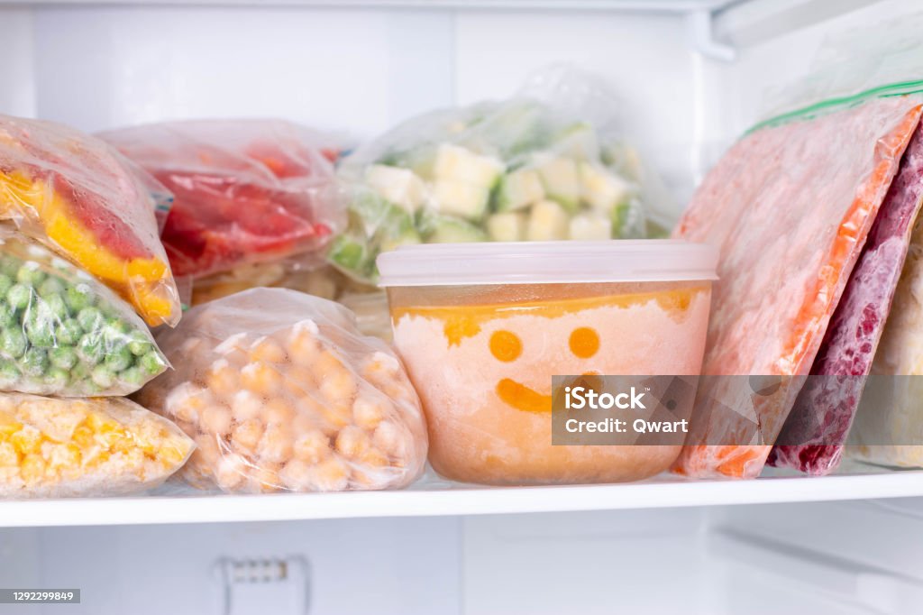 냉동실 위 칸은 온도가 가장 낮고 잘 안 보이고 꺼내기 힘드니 자주 사용하지 않는 음식을 납작하게 펼쳐 얼리는 것을 추천한다.