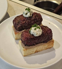 소고기와 돼지고기의 비율- 7:3 소고기는 맛을 돼지고기는 부드러움을 주는 역할을 합니다. 시중에 파는 민찌들은 저렴한 부위들을 모아 갈아놓은 것일 확률이 높습니다. 질기고 퍽퍽한 부위들로 만들면 한계가 있기에 어느 정도 지방과 살코기가 적절하게 분포된 부위들을 사용하면 훨씬 부드럽고 직접 칼로 다지면 번거롭지만 더 식감이 좋아집니다.