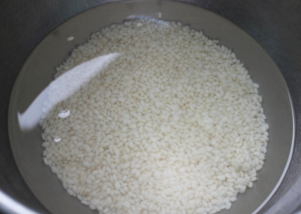 - 찹쌀 불리기-= 찹쌀은 깨끗이 씻어 찬물에 2시간 정도 담가 불린 뒤 건져줍니다.