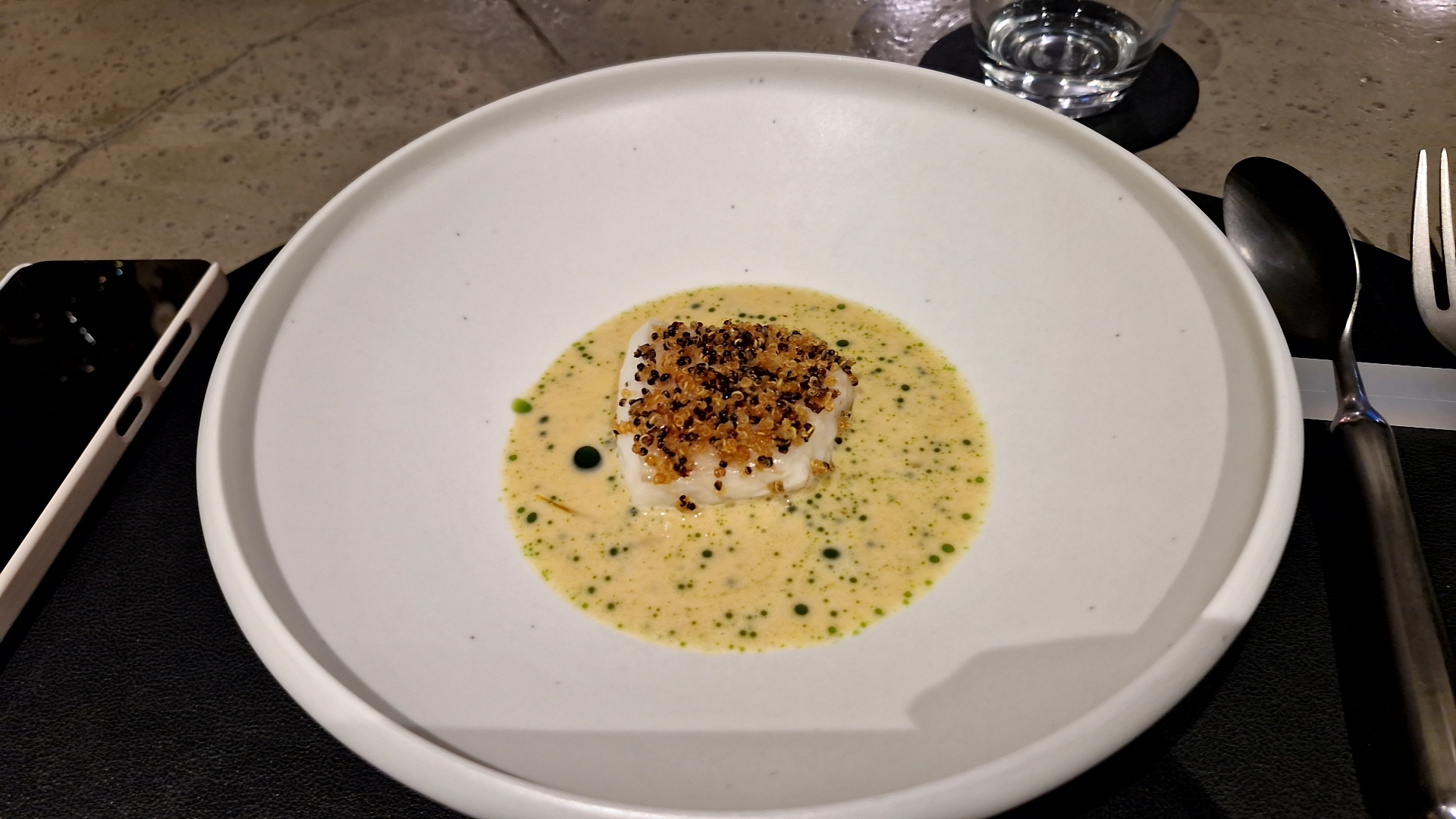 개인적으로 가장 맛있었던 메뉴에요. 생선은 브라인을 했는지 촉촉하고 간이 좋았고 위에 올라간 퀴노아의 식감대비도 좋았습니다. 고소하면서 산미 있는 소스와 은은하게 단맛을 주는 단호박, 그리고 허브들의 향까지 모두 밸런스가 너무 좋았습니다.