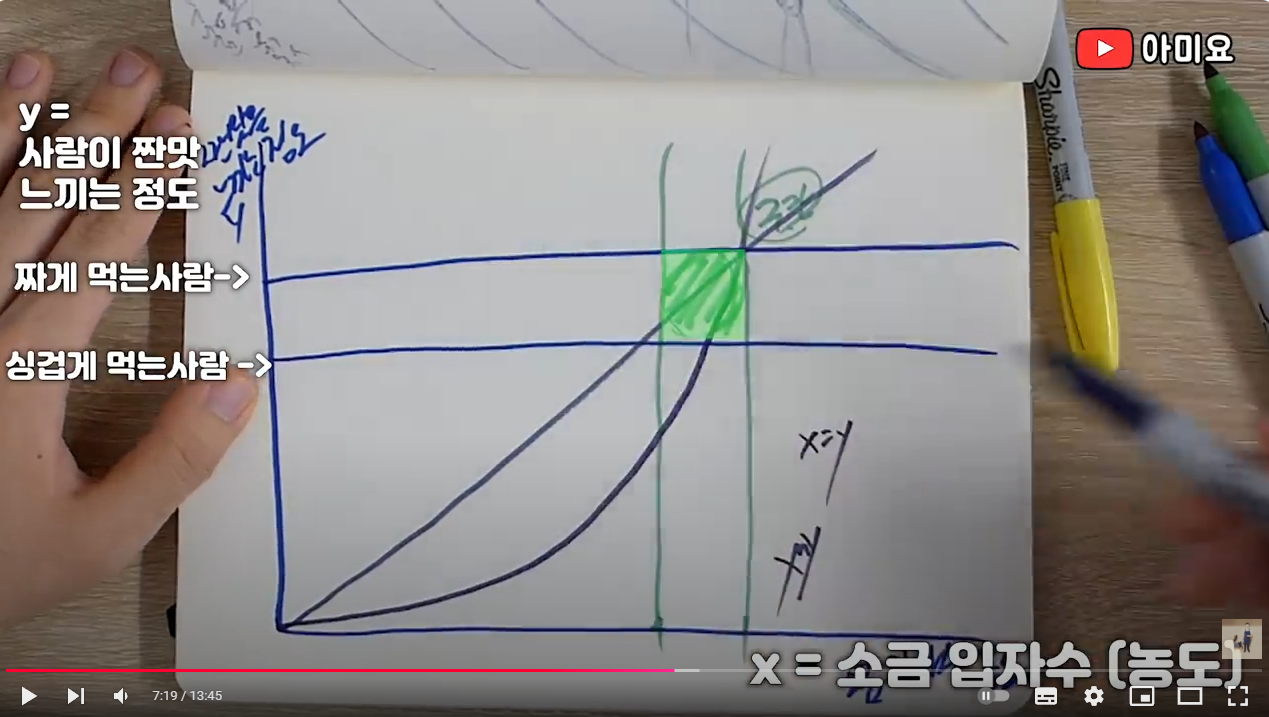 다음 사진은 소금간과 관련한 강의를 하신 아미요님의 유튜브 자료로