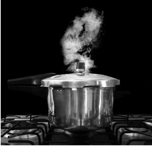 개인적으로 일하면서 정말 사기라고 생각하는 조리법이다. 시간도 얼마 안 걸리는데 좋은 결과물을 얻을 수 있는 압력 조리에 관해 다뤄보겠다. 가압 조리 과정이란 꽉 닫힌 압력솥 안에서 조리하는 것을 말한다. 우리가 일반적으로 아는 압력밥솥을 이용한 조리들이 가압 조리 과정에 해당한다. 압력이 높은 수증기는 120도 정도의 온도를 가지는데 이렇게 높은 온도로 음식을 빠르게 익히는 것이 특징이며 끓이거나 찔 때보다 조리 속도가 빠르다. 콩류, 곡류, 육수, 찜, 수프, 큰 고깃덩어리에 적합한 조리 방법으로 딱 맞는 뚜껑이 필수다. 수증기가 솥 안에 유지되어 기압이 올라가기 때문에 끓는 점이 올라가며 매우 뜨겁고 김이 자욱한 조리 환경이 만들어 진다. 압력솥의 추가 울리면 불을 약불에서 중불로 줄인다. 불이 너무 세면 압력솥 안의 물이 너무 빨리 증발하기 때문이다.