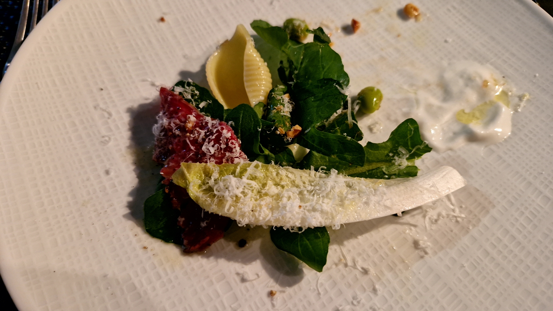 쌉싸름한 맛이 충분히 날 수 있는 재료들이 있음에도 하나도 쓰지 않았습니다. 오히려 적당한 산미와 짠맛 그리고 쓴맛이 균형있게 입안에서 놀아서 정말 맛있게 먹었는 샐러드였습니다.