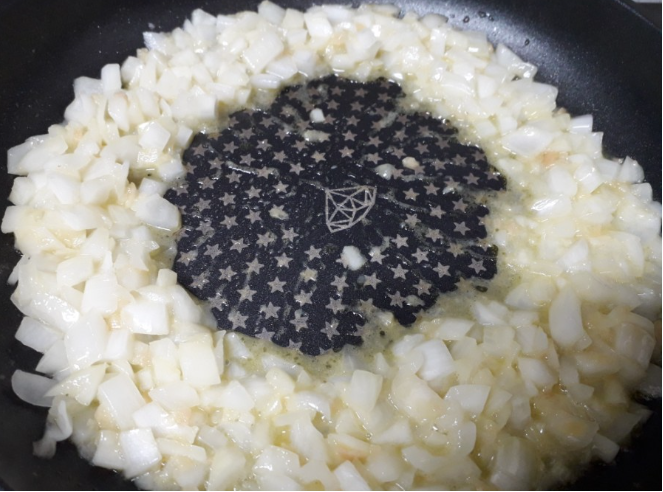 양파는 찹 해서 준비합니다. 양파를 비닐봉지에 담아 윗부분을 묶지 않고 6분 30초 돌려줍니다. (시간 단축)양파 찹